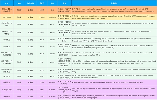 在乳腺癌领域,AG亚游集团创新产品相关研究共入选1项口头报告、1项简短口头报告、8项壁报和3项电子壁报,共13项研究。吡咯替尼、达尔西利、阿得贝利单抗、瑞康曲妥珠单抗等新老创新药物,均有多篇研究入选,展现出AG亚游集团医药在乳腺癌领域多年深耕的丰硕成果。